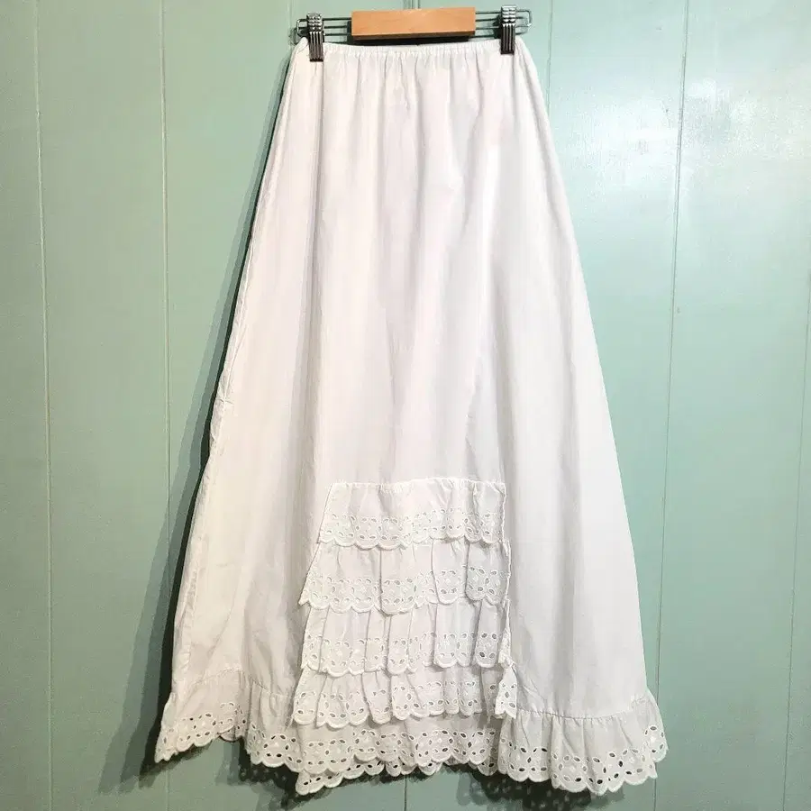 화이트 프릴 롱 스커트 코튼 유로 빈티지 페티코트