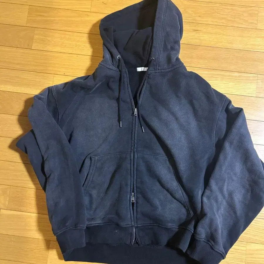 다크 그레이 더블 지퍼 후드 부착 후드티
