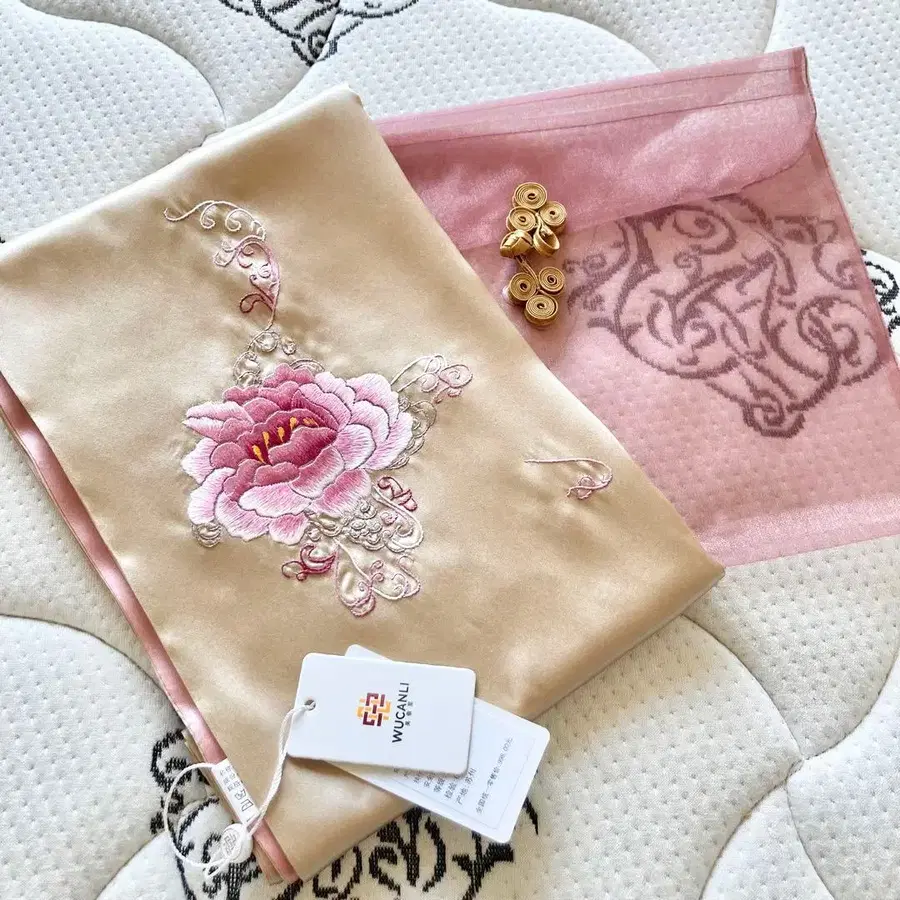 새상품 실크 스톨 모란 자수 이중 모란 일본풍 패턴