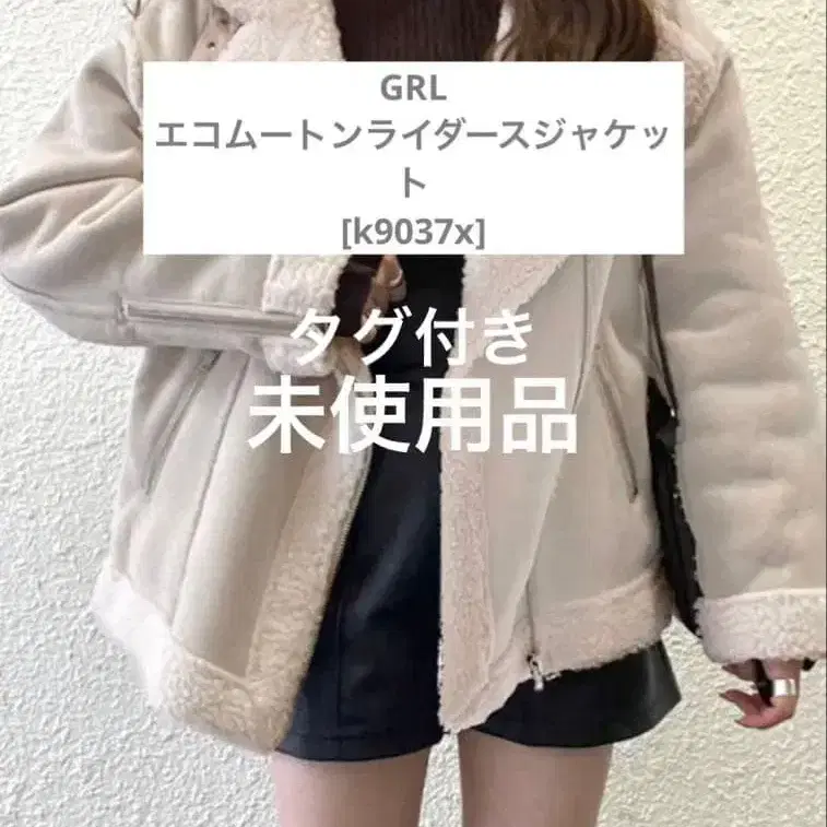 [ 택 포함 미사용 ] GRL 에코 무스탕 라이더 자켓 아이보리