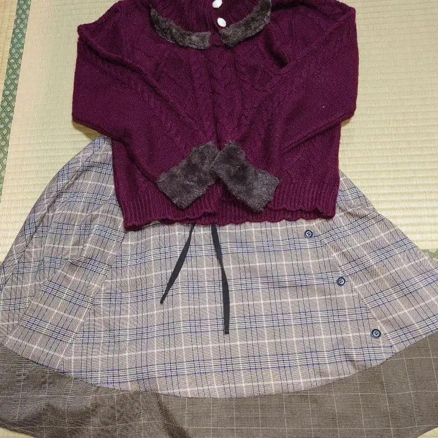 퍼 니트 스웨터 ( 와인 레드 청록색 )