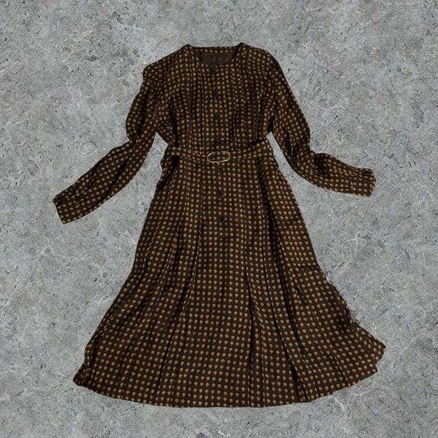 올 패턴 레트로 패턴 롱 원피스 벨트 포함 클래식 구제 의류 90s