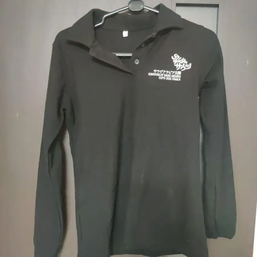 오사카 만박 사우디아라비아관 블랙 긴팔 피케 셔츠 로고
