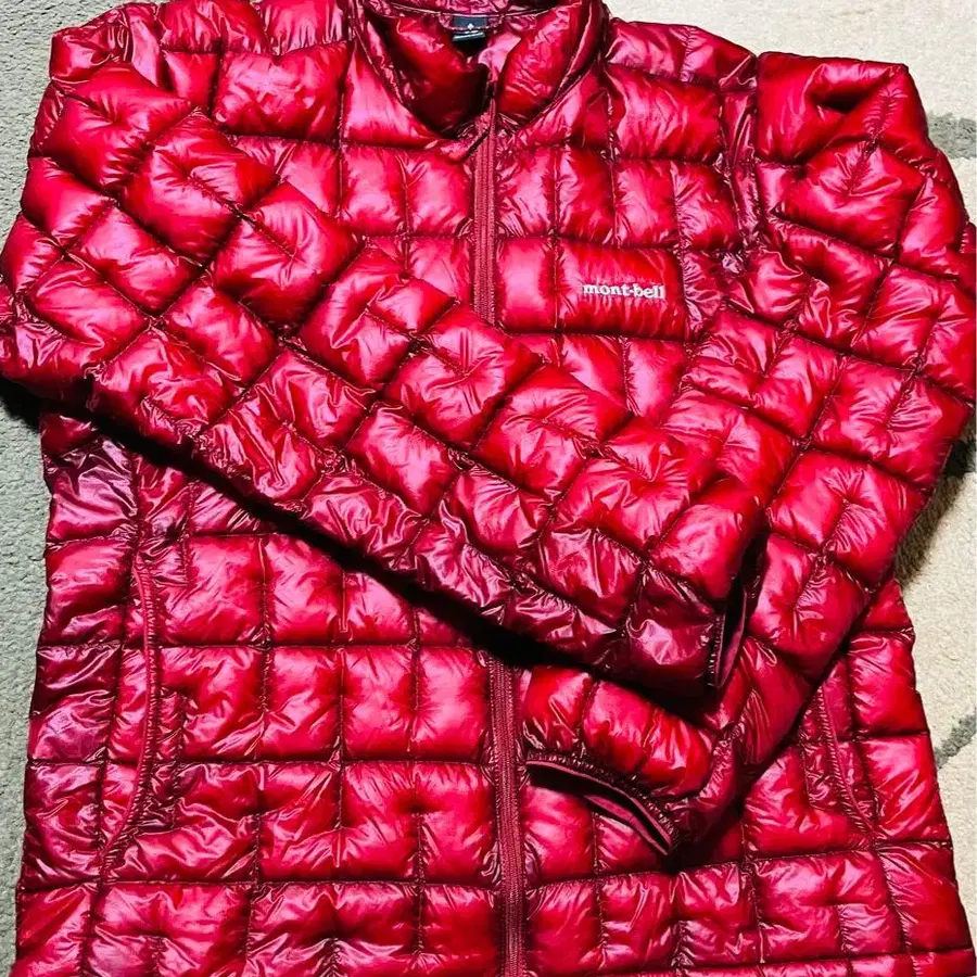 경량성과 보온성이 뛰어난 퀼팅 디자인의 레드 다운 자켓.