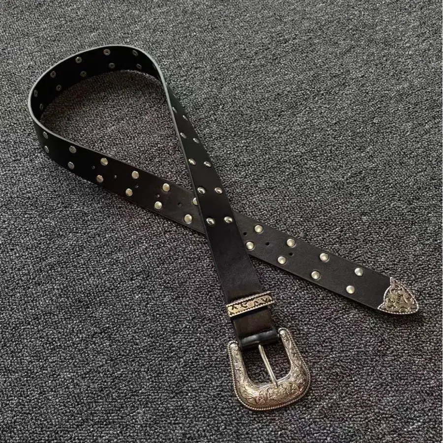 스터드 장식 블랙 가죽 벨트