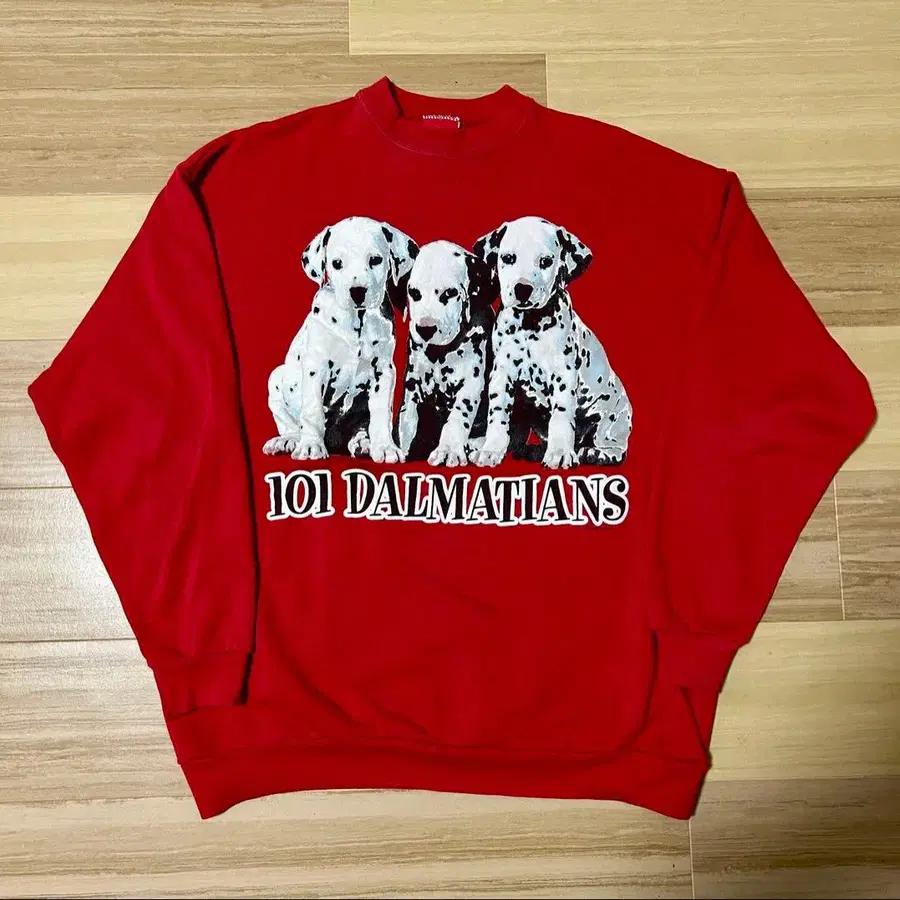 Disney 101마리 강아지 프린트 맨투맨 빨간색 구제 의류