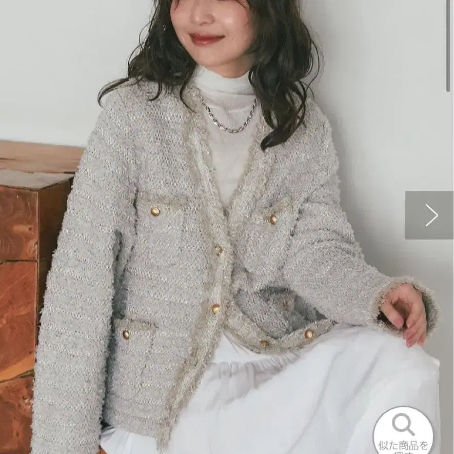 [ 새상품 ] 라 부티크 봉봉 팬시 트위드 니트 자켓 그레이지