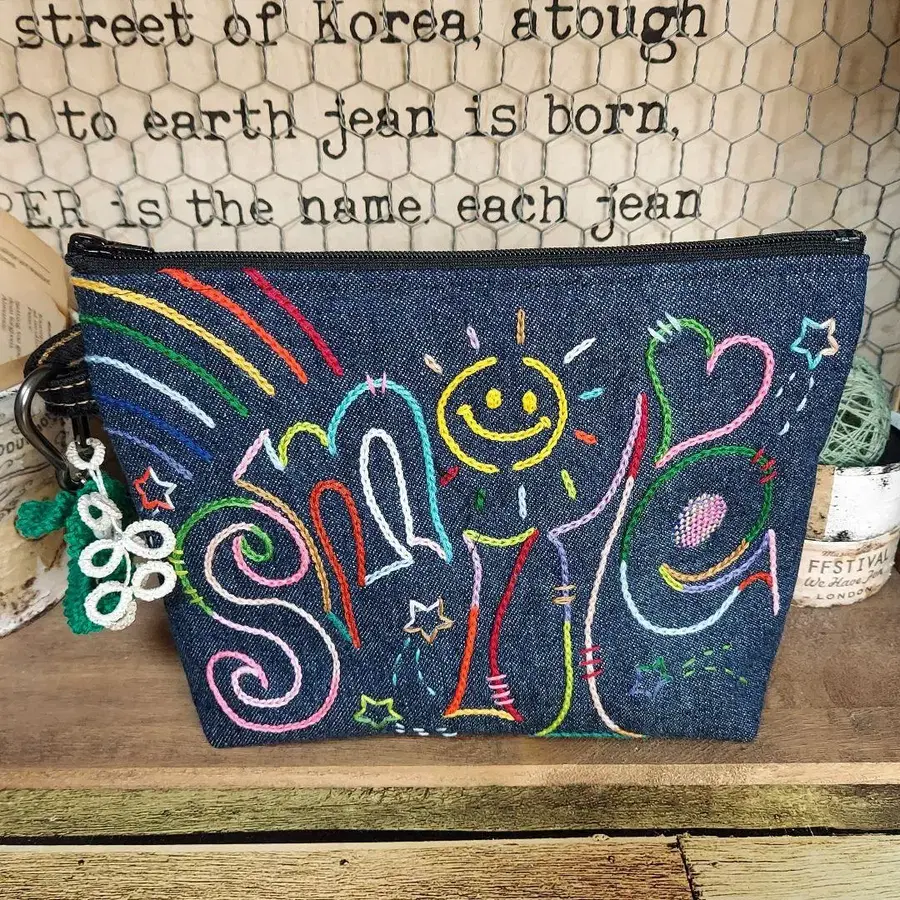 자수 데님 파우치 No.211 데님 리메이크 화장품 파우치 소품함