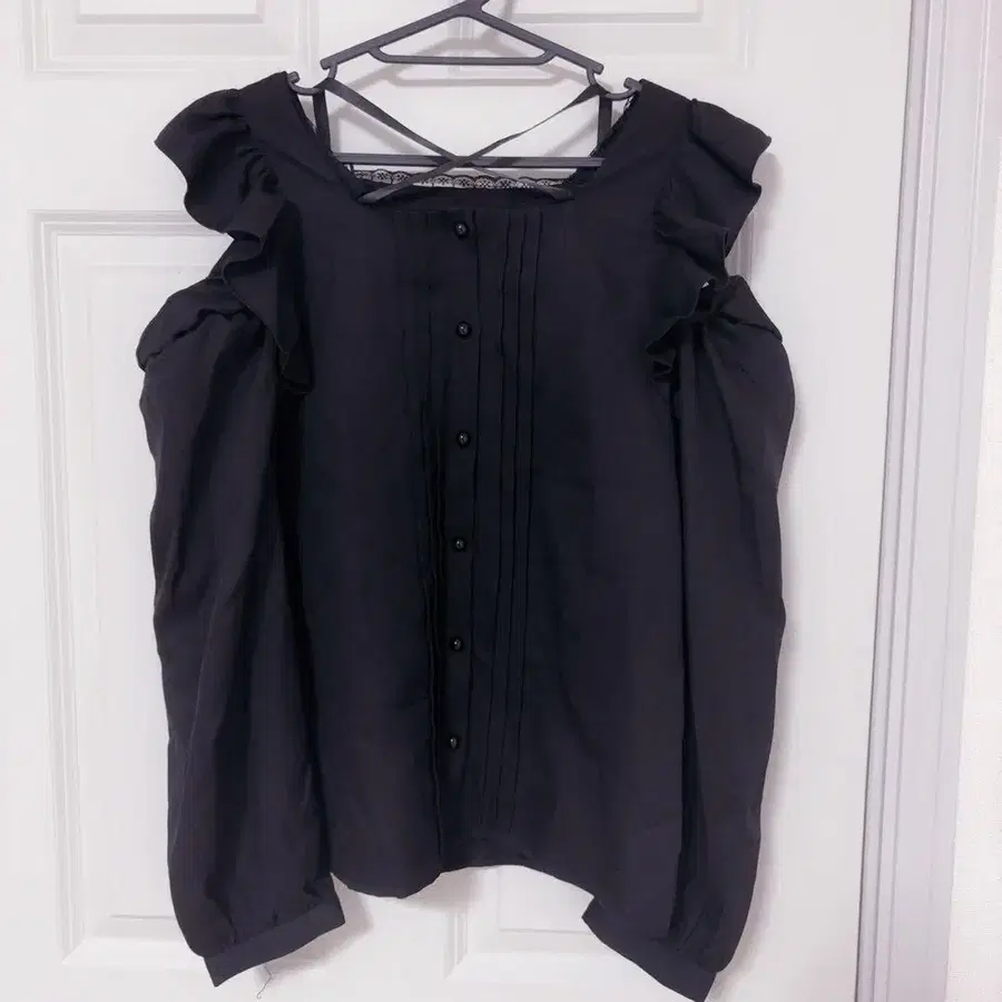 MARS 어깨 트임 새틴 리본 크로스 블라우스