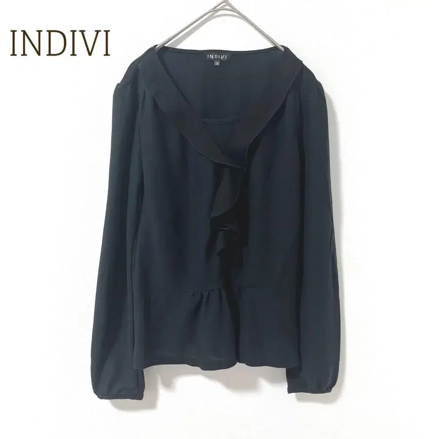 인디비 블라우스 긴팔 (38) 프릴넥 블랙 무지 일본제