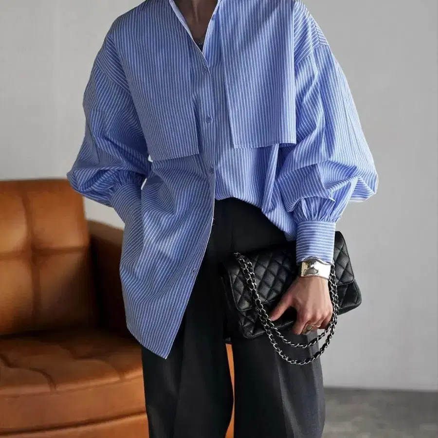 새상품 카사네 레이어드 셔츠 블루