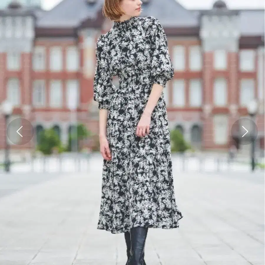 AND COUTURE 셔링 단색 꽃무늬 원피스