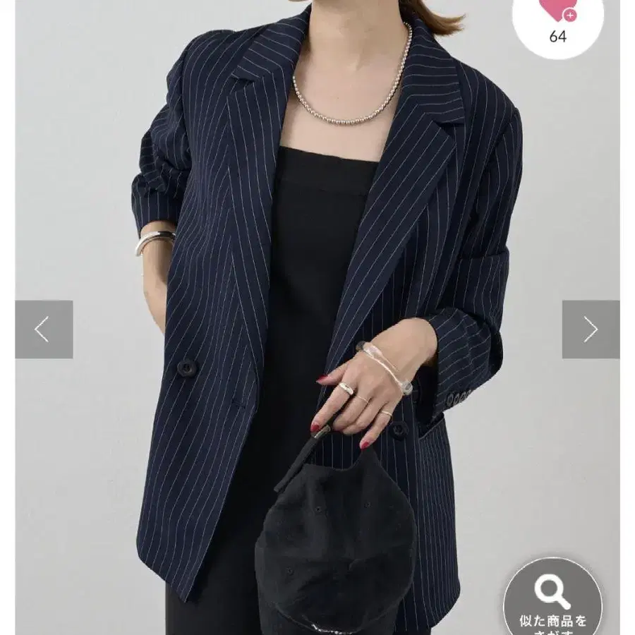SHENERY 스트라이프 테일러드 자켓 38 네이비
