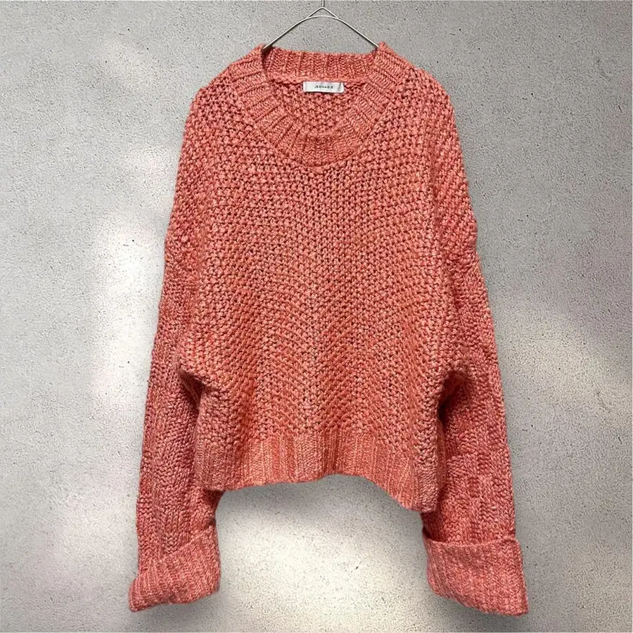 지나시스 F 핑크 뜨개질 니트 스웨터 긴팔 루즈핏 니트