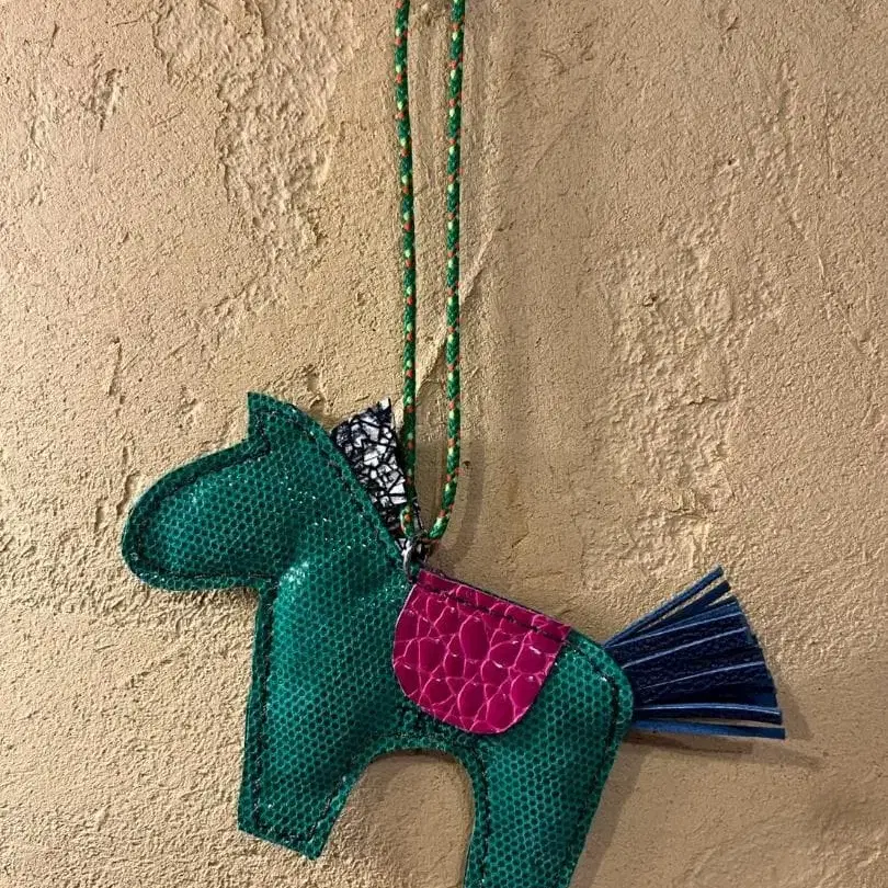 핸드메이드샵 Teepe가 선보이는, 세상에 단 하나뿐인 가죽 호스 참입니다. 고급 소가죽 프린트를 사용했으며, 재단, 봉제, 마감까지 하나하나 정성스러운 수작업으로 제작했습니다. 말은 예로부터 [일이 순조롭게 진행된다] [행운이 달려온다]는 신의 탈것, 행운의 물건으로 여겨져 왔으며, 내년의 십이지신이기도 합니다. 매년 나라의 쇼소인전에서 전시되는 물품 중 하나로 말의 안장이 전시되었던 점, 아메리카 원주민에게 필수적인 아이템에 말이 있었던 점에서 영감을 받아 몇 년 전부터 제작하고 있습니다. 최근 매일방송의 정보 버라이어티 프로그램 [욘찬TV 부라산도]에서도 소개되었습니다. 자신을 위한 부적으로는 물론, 소중한 분께 특별한 기프트로도 추천합니다. 하나하나 정성껏 핸드메이드로 제작했습니다. 같은 디자인은 없으며, 1점 한정으로 취급합니다. 2026년 십이지신이기도 한 이 아이템을 내년의 부적으로 꼭 착용해 보세요! 사이즈: M 세로: 약 9cm (머리~발끝) 가로: 약 12cm (얼굴~엉덩이) 소재: 소가죽 ※ 핸드메이드이므로 약간의 개체 차이가 있습니다. 현재 매장 판매 가격에서 10% OFF로 제공합니다. 구매 후에는 매장에서 직접 발송합니다.