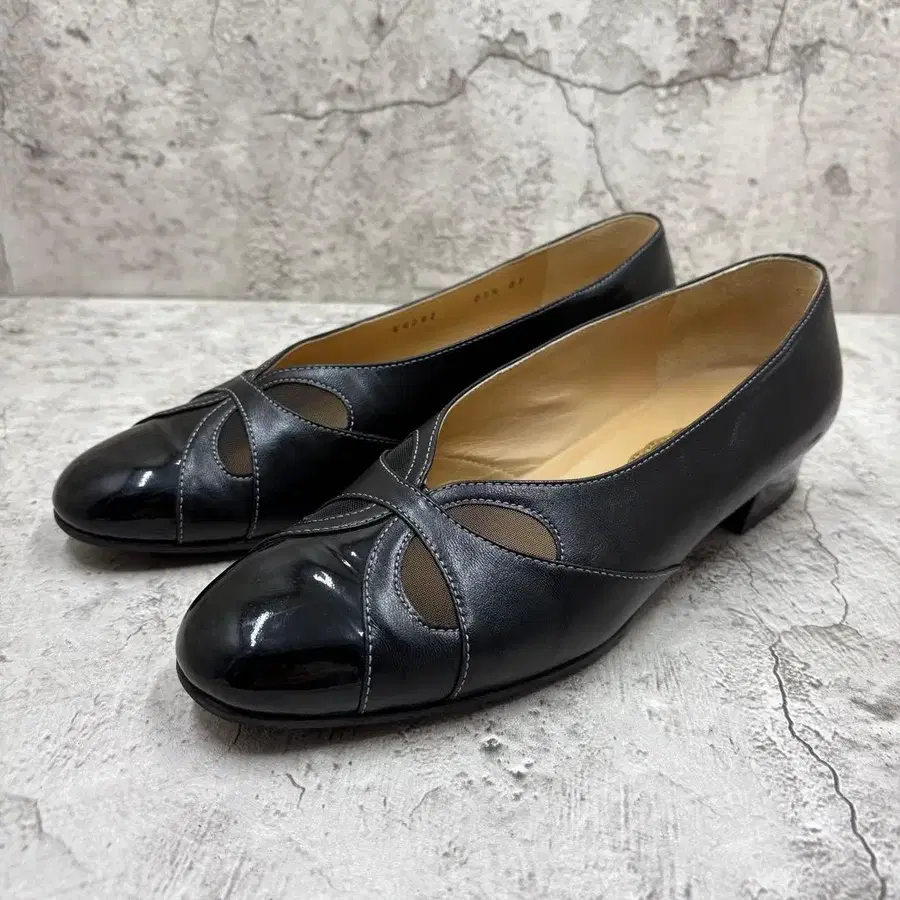 새상품급 긴자 카네마츠 스틸레토 로우힐 펌프스 블랙 23.5