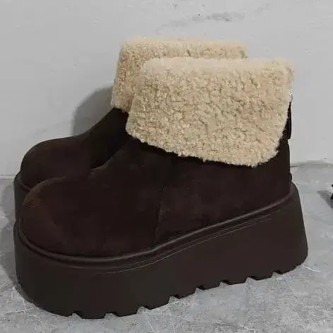 브라운 스웨이드 통굽 부츠 퍼 포함