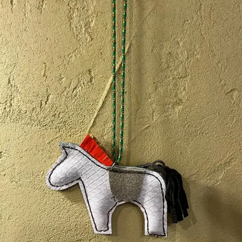 핸드메이드샵 Teepe가 선보이는, 세상에 단 하나뿐인 가죽 호스 참입니다. 고급 소가죽 프린트를 사용했으며, 재단, 봉제, 마감까지 하나하나 정성스러운 수작업으로 제작했습니다. 말은 예로부터 [일이 순조롭게 진행된다] [행운이 달려온다]는 신의 탈것, 행운의 물건으로 여겨져 왔으며, 내년의 십이지신이기도 합니다. 매년 나라의 쇼소인전에서 전시되는 물품 중 하나로 말의 안장이 전시되었던 점, 아메리카 원주민에게 필수적인 아이템에 말이 있었던 점에서 영감을 받아 몇 년 전부터 제작하고 있습니다. 최근 매일방송의 정보 버라이어티 프로그램 [욘찬TV 부라산도]에서도 소개되었습니다. 자신을 위한 부적으로는 물론, 소중한 분께 특별한 기프트로도 추천합니다. 하나하나 정성껏 핸드메이드로 제작했습니다. 같은 디자인은 없으며, 1점 한정으로 취급합니다. 2026년 십이지신이기도 한 이 아이템을 내년의 부적으로 꼭 착용해 보세요! 사이즈: M 세로: 약 9cm (머리~발끝) 가로: 약 12cm (얼굴~엉덩이) 소재: 소가죽 ※ 핸드메이드이므로 약간의 개체 차이가 있습니다. 현재 매장 판매 가격에서 10% OFF로 제공합니다. 구매 후에는 매장에서 직접 발송합니다.