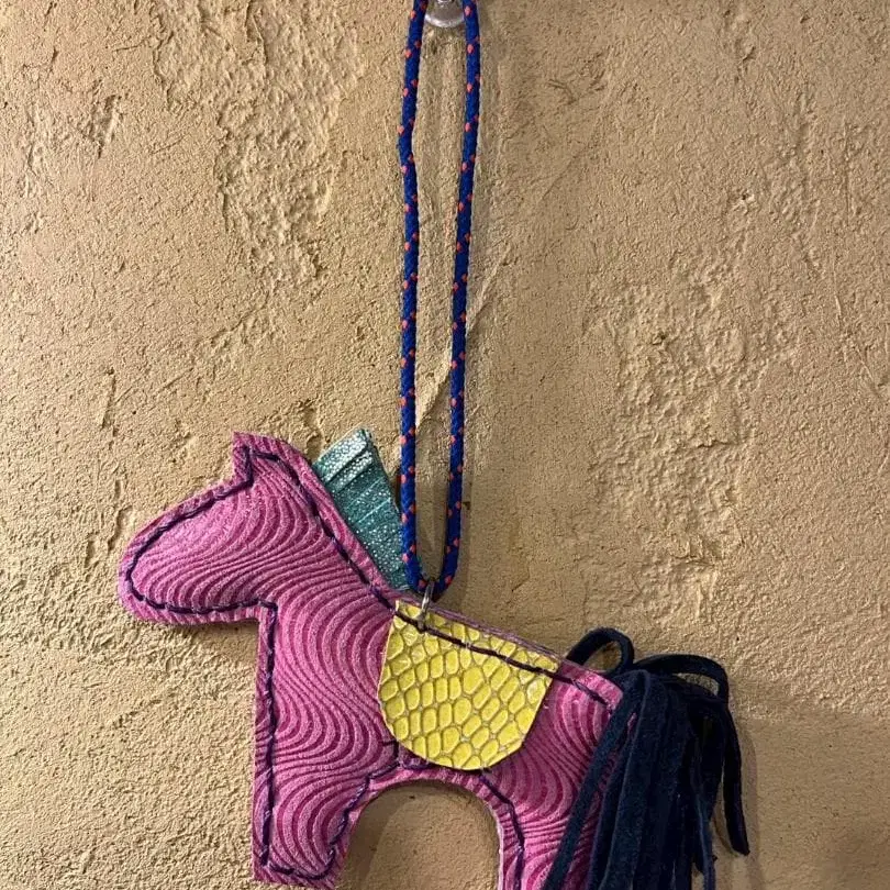 핸드메이드샵 Teepe가 선보이는, 세상에 단 하나뿐인 가죽 호스 참입니다. 고급 소가죽 프린트를 사용했으며, 재단, 봉제, 마감까지 하나하나 정성스러운 수작업으로 제작했습니다. 말은 예로부터 [일이 순조롭게 진행된다] [행운이 달려온다]는 신의 탈것, 행운의 물건으로 여겨져 왔으며, 내년의 십이지신이기도 합니다. 매년 나라의 쇼소인전에서 전시되는 물품 중 하나로 말의 안장이 전시되었던 점, 아메리카 원주민에게 필수적인 아이템에 말이 있었던 점에서 영감을 받아 몇 년 전부터 제작하고 있습니다. 최근 매일방송의 정보 버라이어티 프로그램 [욘찬TV 부라산도]에서도 소개되었습니다. 자신을 위한 부적으로는 물론, 소중한 분께 특별한 기프트로도 추천합니다. 하나하나 정성껏 핸드메이드로 제작했습니다. 같은 디자인은 없으며, 1점 한정으로 취급합니다. 2026년 십이지신이기도 한 이 아이템을 내년의 부적으로 꼭 착용해 보세요! 사이즈: M 세로: 약 9cm (머리~발끝) 가로: 약 12cm (얼굴~엉덩이) 소재: 소가죽 ※ 핸드메이드이므로 약간의 개체 차이가 있습니다. 현재 매장 판매 가격에서 10% OFF로 제공합니다. 구매 후에는 매장에서 직접 발송합니다.