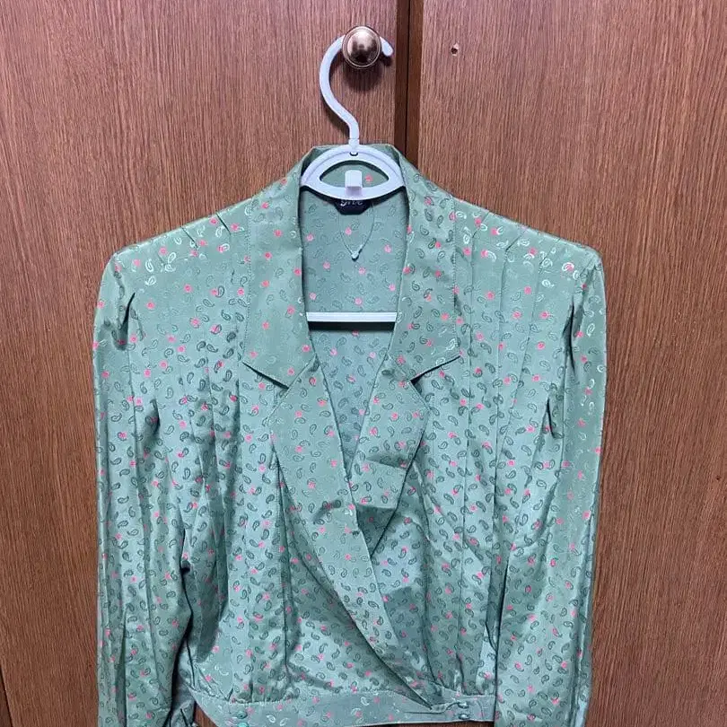 파스텔 컬러 다이아몬드 패턴 블라우스 스커트 세트