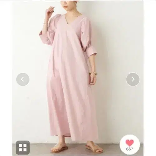 Omekashi 핑크 V넥 퍼프 슬리브 롱 원피스