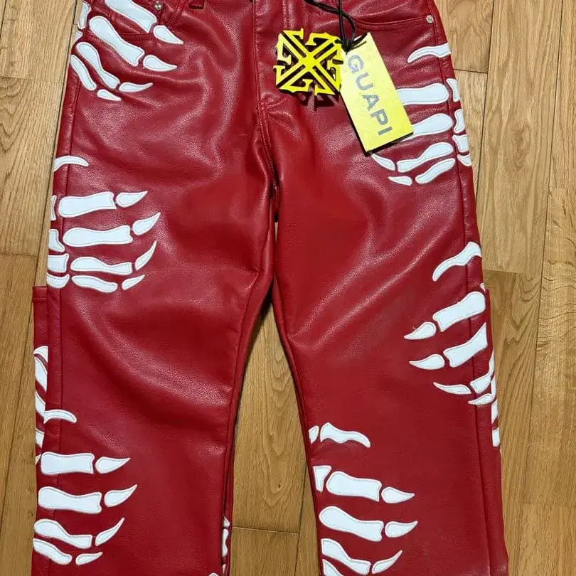 GUAPI 구아피 가죽 레드 플레어 팬츠 32