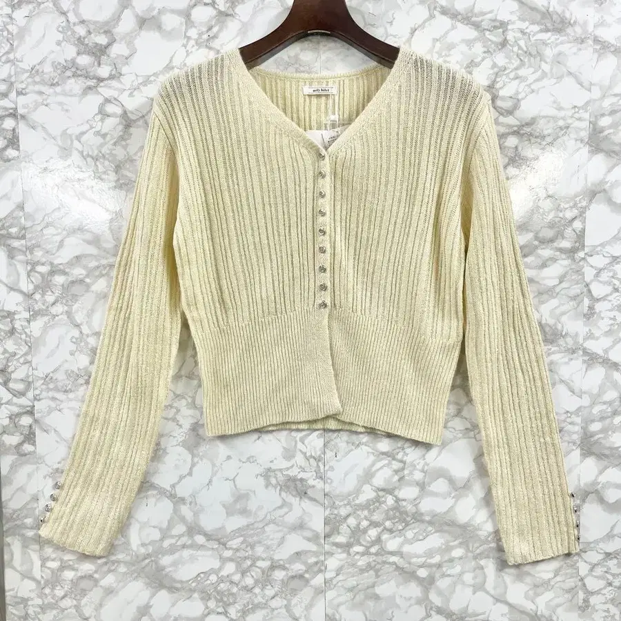 새상품 미사용 mily bilet 크림색 리브 편직 가디건