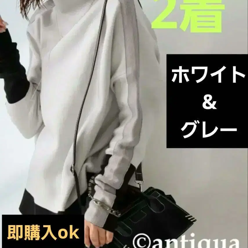 antiqua 더블 자카드 배색 니트 그레이&화이트