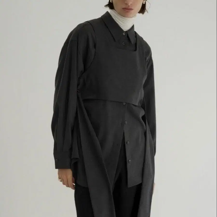 클라네 뷔스티에 세트 체크 셔츠 그레이