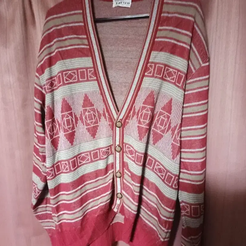 CARVEN 칼벤 PARIS 기하학 패턴 오르테가 무늬 빨간색 가디건
