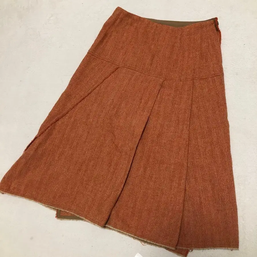 45R 울 랩 스커트 헤링본 로고 자수 롱 사이즈 2 빨간색