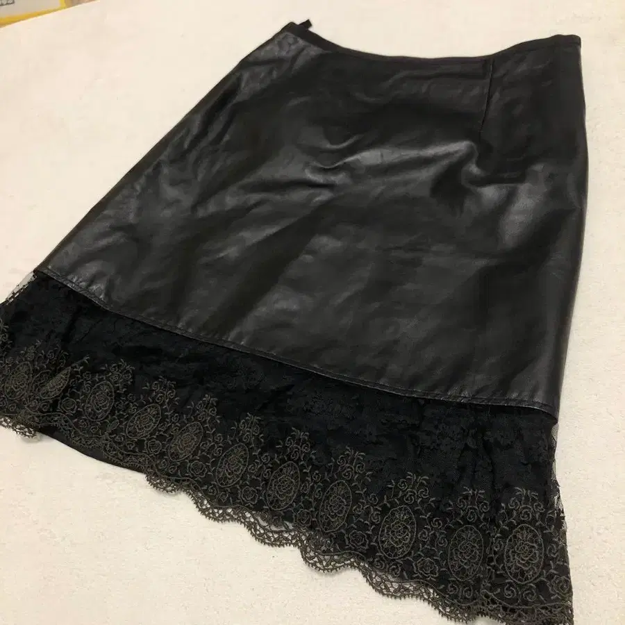 수입 로사 라무 가죽 스커트 블랙 럭셔리 자수 사이즈 44