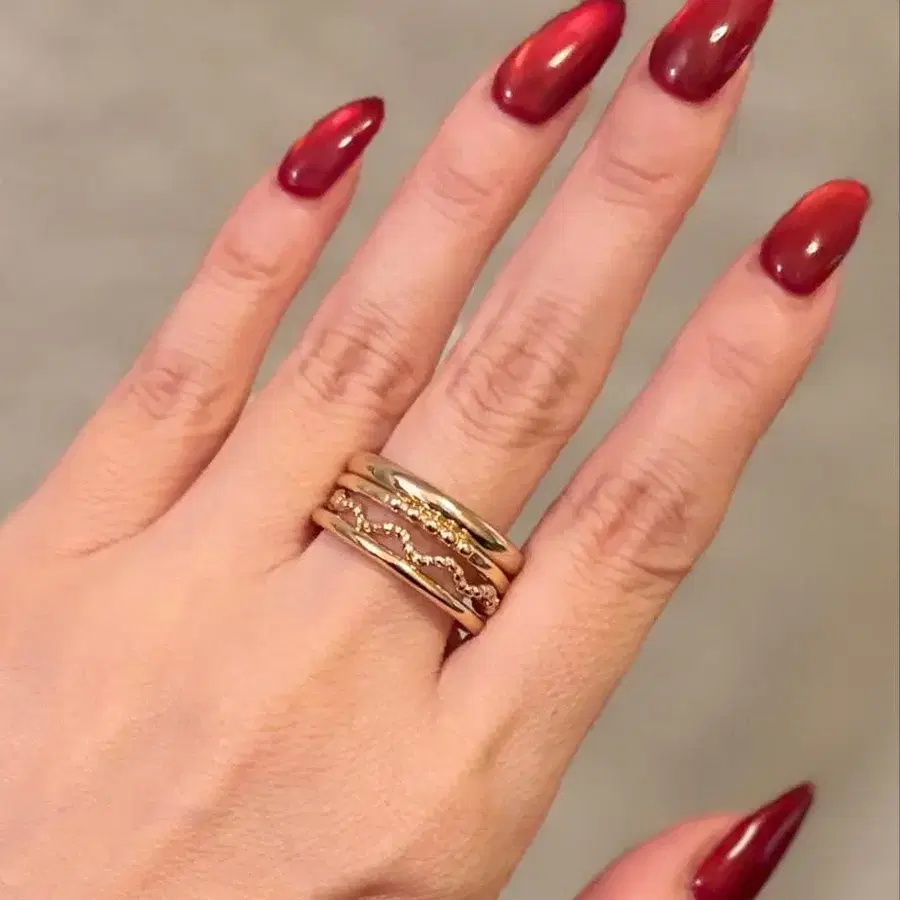 아쉬페 프랑스 골드 컬러 레이어드 반지 4개 세트 18~19호
