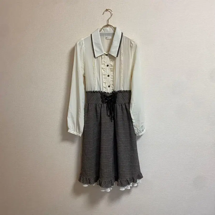axes femme 긴팔 무릎 기장 원피스 [ M ] 아이보리 체크