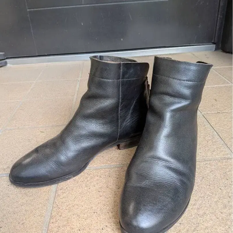 천연 가죽 뒷지퍼 숏부츠