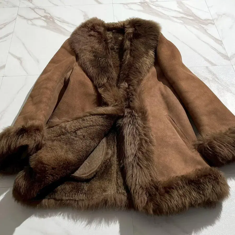 • 리얼 무스탕 자켓 코트 보아 안감 브라운 방한 램스킨 가죽
