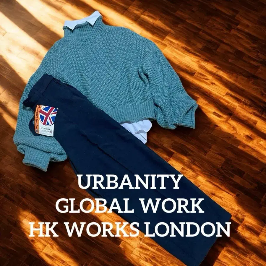 [묶음 판매] 민트 그린 니트와 화이트 셔츠 & 벨트 포함 팬츠 set