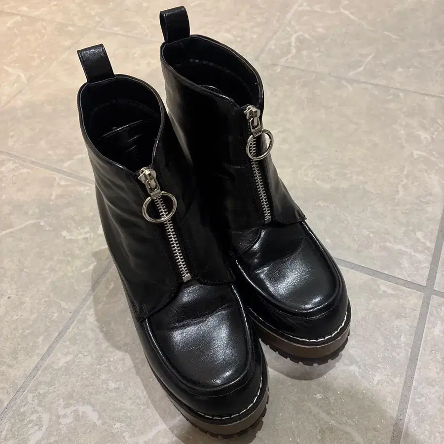 오리엔탈 트래픽 프론트 지퍼 통굽 부츠 L