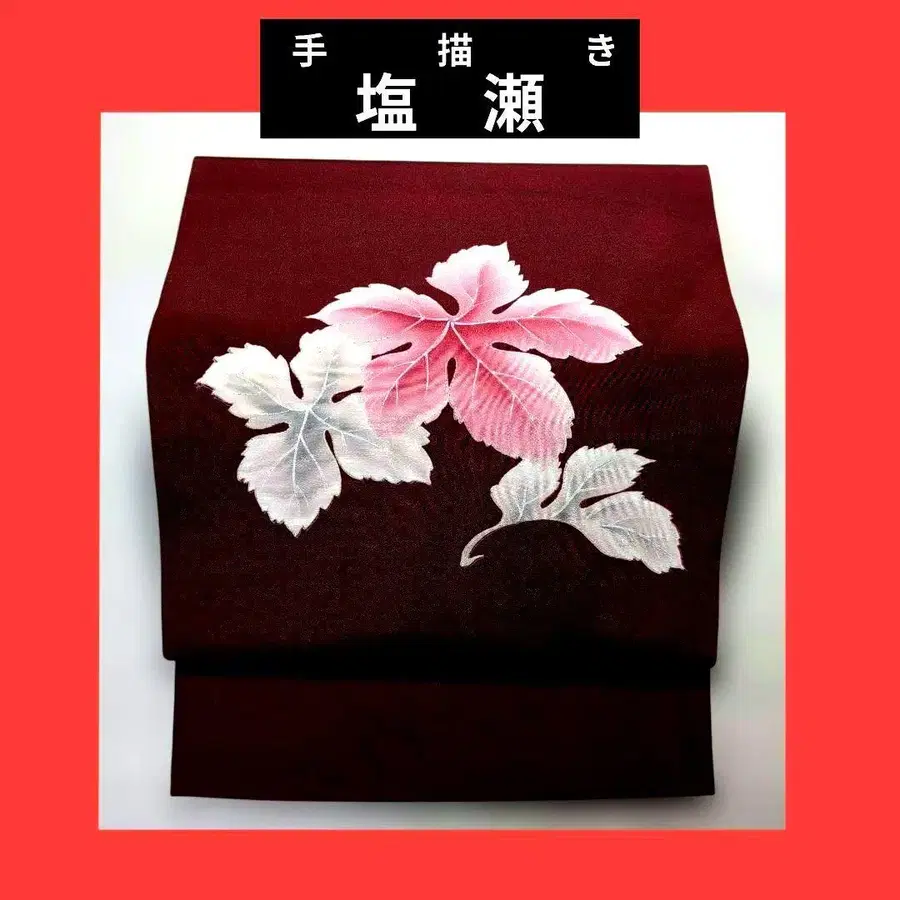 1022 손그림 시오제 나고야 오비 단풍 (와인 레드 바탕)