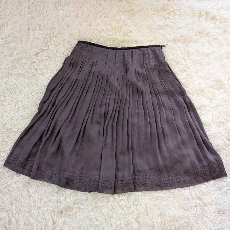 그레이 색상의 폴리에스테르 플리츠 스커트, 사이즈 40.