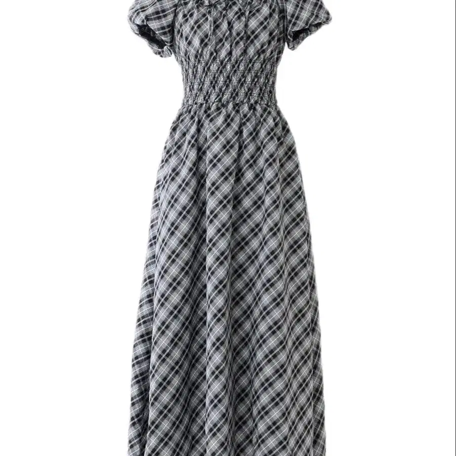 [택 포함 새상품] NICE CLAUP 셔링 반팔 원피스 체크 M