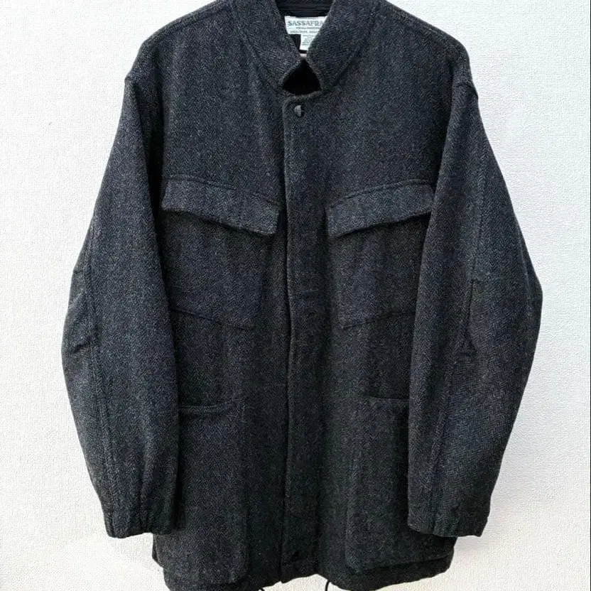 SASSAFRAS 사사프라스 DIGS CREW PROTECTIVE JACKET (디그스크루 프로텍티브 재킷) 입니다. 2024년 가을/겨울 신상입니다. 70년대 미군이 화학 물질의 영향으로부터 신체를 보호하기 위해 개발한 케미컬 프로텍티브 재킷을 베이스로, 사사프라스다운 기능적인 포켓 디자인으로 재해석한 하프 코트 타입의 아우터입니다. 프론트는 히든 스냅 버튼 사양이며, 소매는 밴딩으로 핏을 잡아주고 밑단에는 코드 조임이 내장되어 있습니다. 뒷면에 3개, 안쪽에 2개의 포켓을 갖춘 실용적인 아이템입니다. 소재는 두께감 있고 부드러운 울 담요 원단입니다. 보온성이 뛰어나면서도 가볍고 착용감이 유연합니다. 탄탄한 원단감에도 불구하고 자연스러운 드레이핑이 있으며, 고급스러운 블랙 컬러가 전체적인 룩을 잡아줍니다. 가을/겨울 메인 아우터로는 물론, 초봄에는 라이트 이너와 조합해도 좋습니다. 데님, 치노, 워크 팬츠와도 궁합이 좋으며, 부츠나 로우컷 스니커즈와도 균형이 잘 맞습니다. 정가 58,300 엔 컬러 블랙 사이즈 L 어깨 너비: 55 cm 가슴 너비: 60 cm 소매 길이: 61 cm 기장: 78 cm 본인 172cm 73kg 착용은 거의 하지 않고 보관했습니다. 미사용에 가까운 상태입니다. 담요 원단 특유의 볼륨감이 잘 살아있으며, 컨디션은 매우 좋습니다. [ 주의 사항 ] 소중히 착용했지만, 데일리로 워크웨어로 사용했던 것들이라 그에 따른 데미지와 멋이 있습니다. 본문에도 제 주관적인 상태를 기재하므로, 하나의 판단 자료로 삼아주시기 바랍니다. 치수 측정은 개인적인 업무입니다. 참고 정도로 부탁드립니다. 검품은 하나하나 진행합니다. 특별히 언급할 만한 데미지는 사진을 게재하지만, 미세한 것은 멋으로 받아들여 주시면 감사하겠습니다. 100점 넘는 컬렉션, 계속 판매 중. 구제 의류이므로 이해해 주시면 감사하겠습니다. #sassafras #사사프라스 #DIGSCREW #PROTECTIVEJACKET #담요 #워크재킷 #라이트아우터 #가을겨울아우터