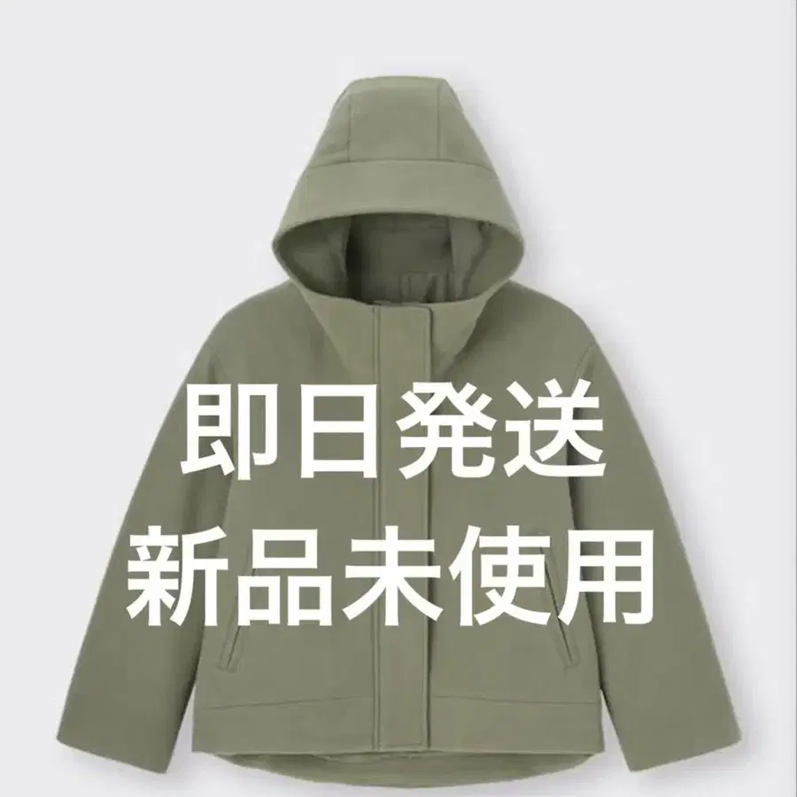 [ 미사용 새상품 ] GU 코지 멜톤 숏 후디 코트 올리브 그린