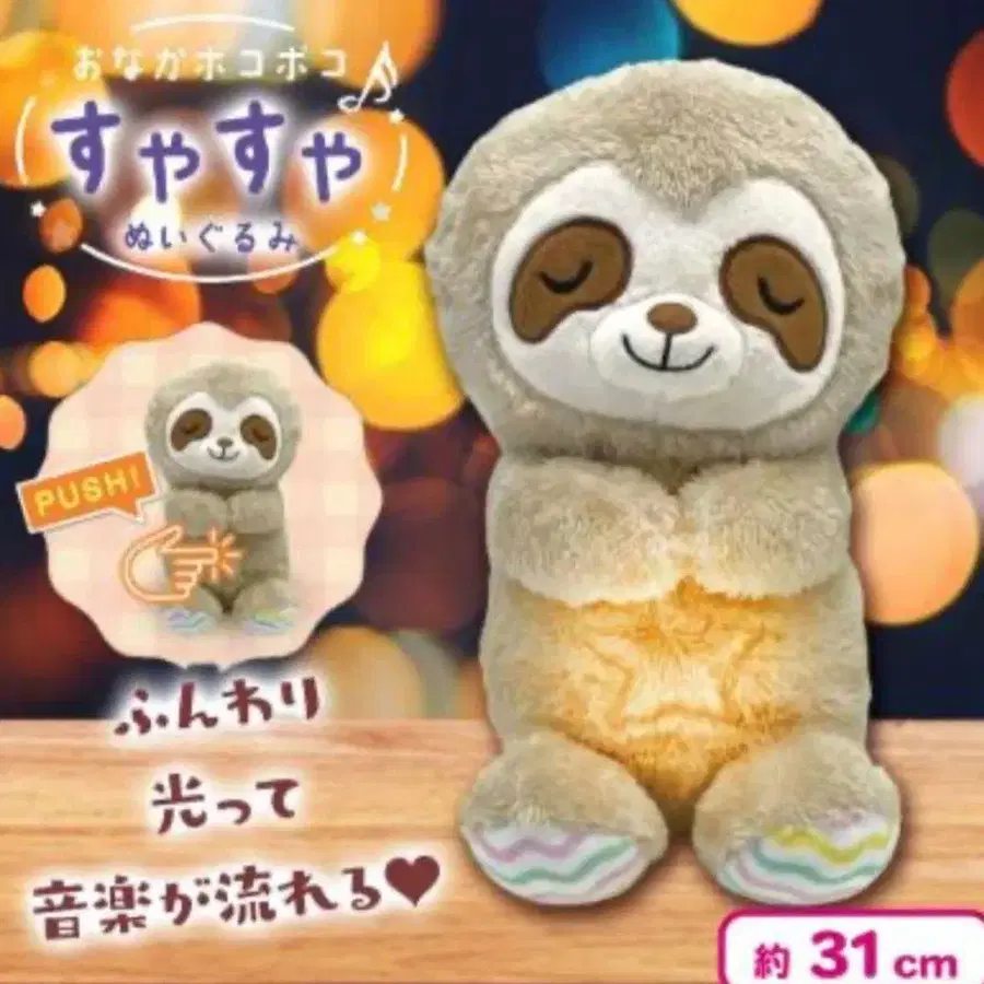 나마케모노 배 뽀로롱 쌔근쌔근 봉제 인형 배가 빛나고 음악이 흘러나옴