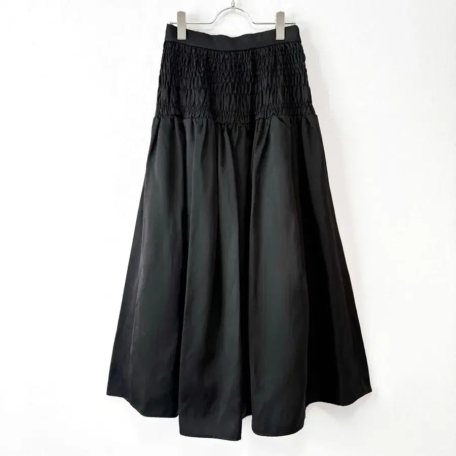 새상품급 UN3D. 새틴 셔링 스커트 플레어 볼륨 웨스 밴딩 블랙
