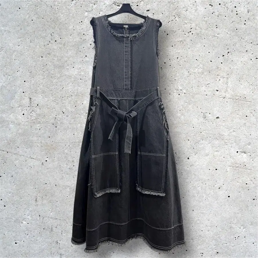화이트 스티치가 블랙 데님에 돋보이며, 하나만으로 코디네이트가 완성되는 존재감 있는 원피스입니다.