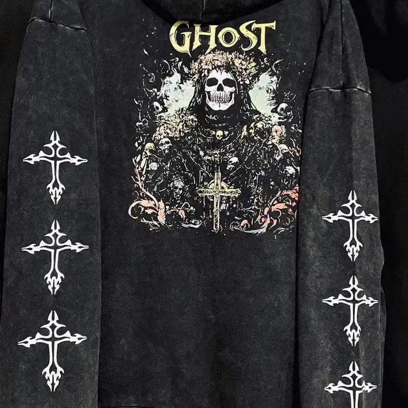 고스트 스컬 디자인 풀 집업 후드티 사신 빈티지 락 XL 상당