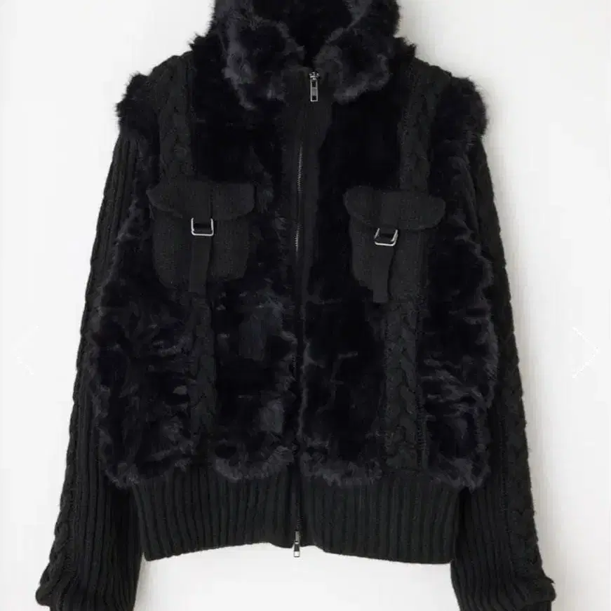 laguagem CABLE KNIT FAUX FUR 블루종