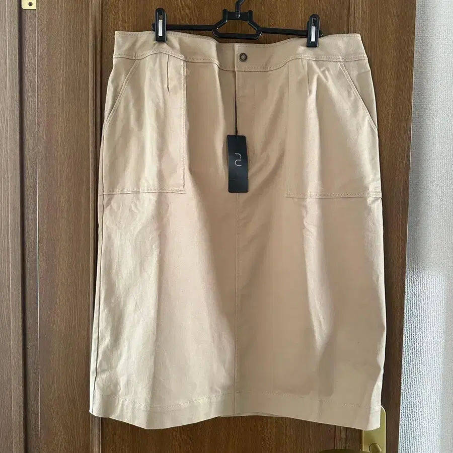 [ ru 아르유 ] 빅 사이즈 베이지 무릎 아래 기장 스커트 지퍼 있음