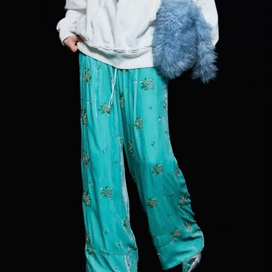 MAISON SPECIAL 비즈 플라워 자수 벨로아 팬츠